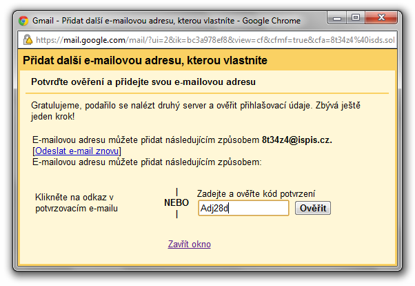 3. Jako e-mailovou adresu zadejte <ID-vaší-datové-schránky>@ispis.cz