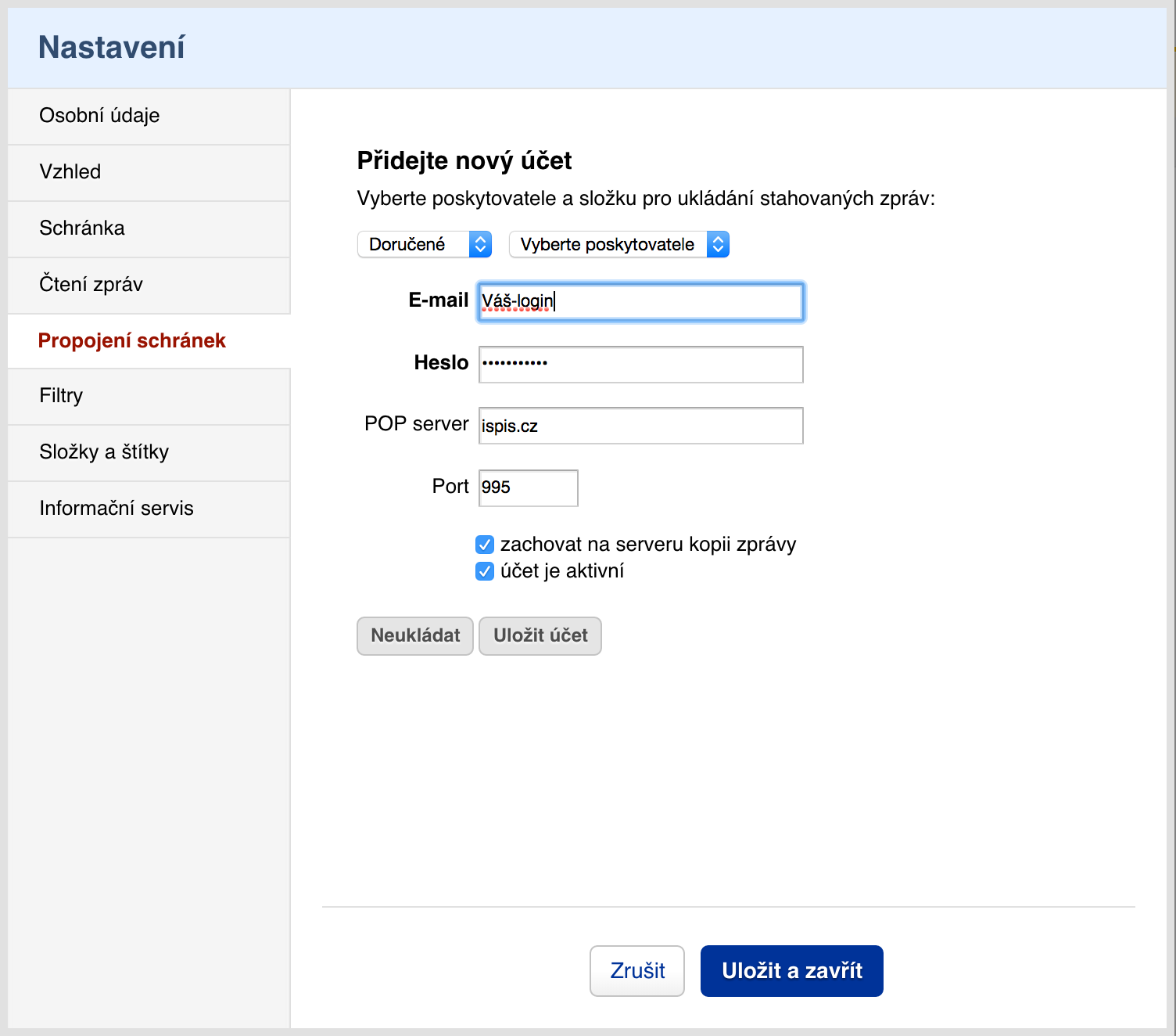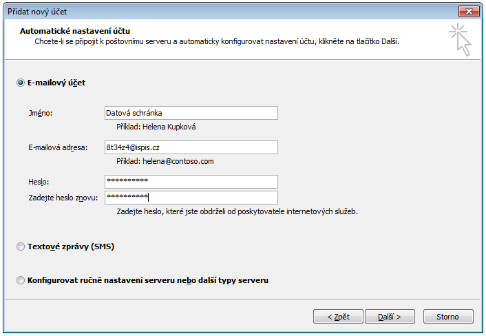TIP: Pokud Váš software neumí přidávání e-mailových účtů, můžete si nastavit přeposílání datových zpráv na Váš e-mail